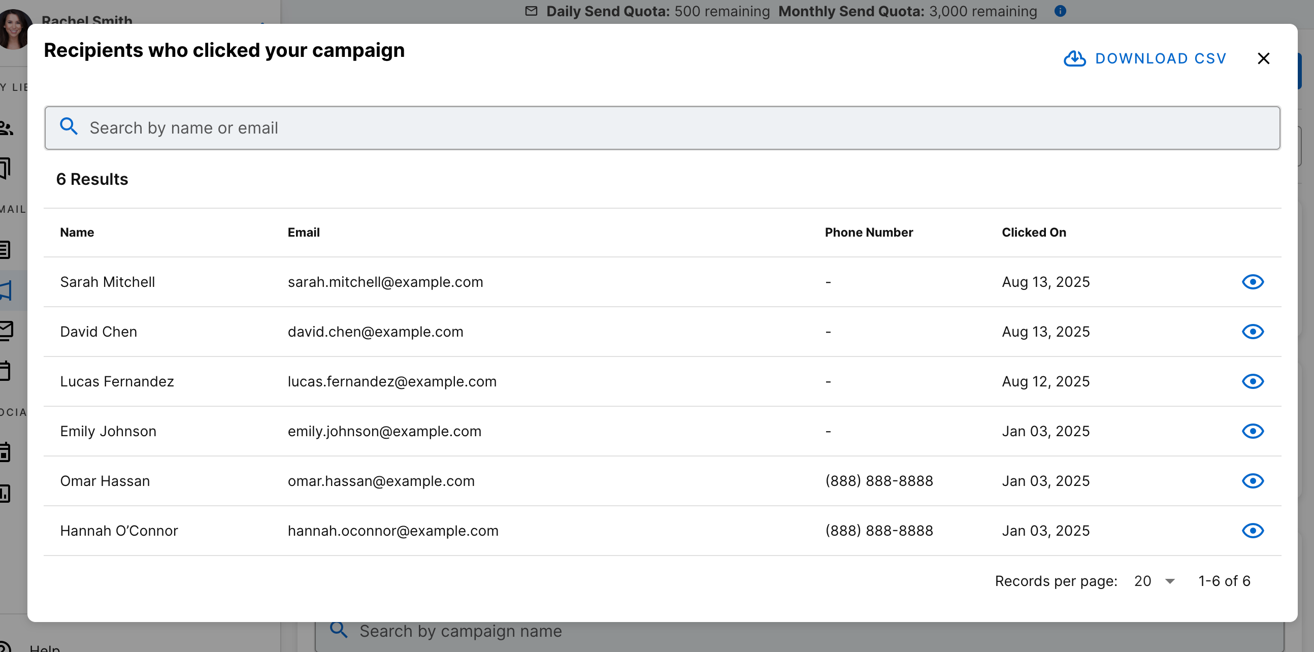 This makes it easy to go beyond percentages and see exactly who engaged with your campaign.